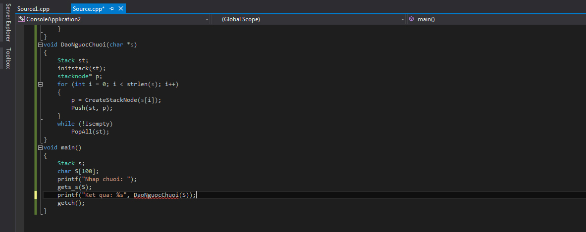 Mọi người giúp mình, tại sao mình gọi hàm DaoNguocChuoi thì nó cứ báo lỗi miết!