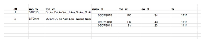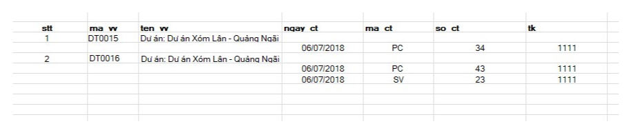 Ví dụ như em select ra được 1 dòng gồm có: ma_vv,ten_vv,tk,ps_no …