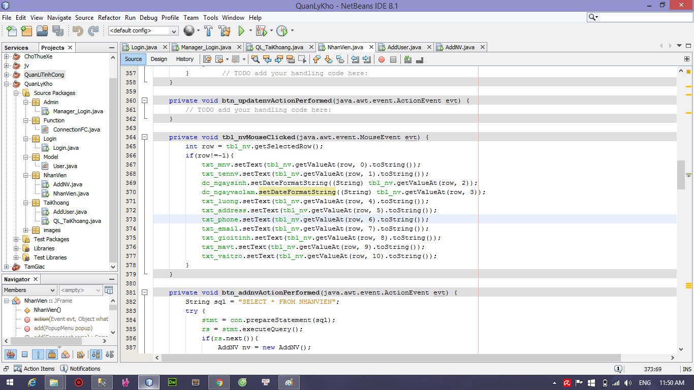 Không được bạn ơi! Ctrl+Space nó không có gợi ý chỗ “tbl_nv.getDate().getTime()”