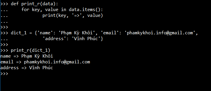 Cái biến em đưa ra chỉ là ví dụ thôi ạ. Còn nếu như trong value của dict có dict nó sâu khoảng 2 lớp thôi thì hàm của bác đã không dùng được rồi ạ.