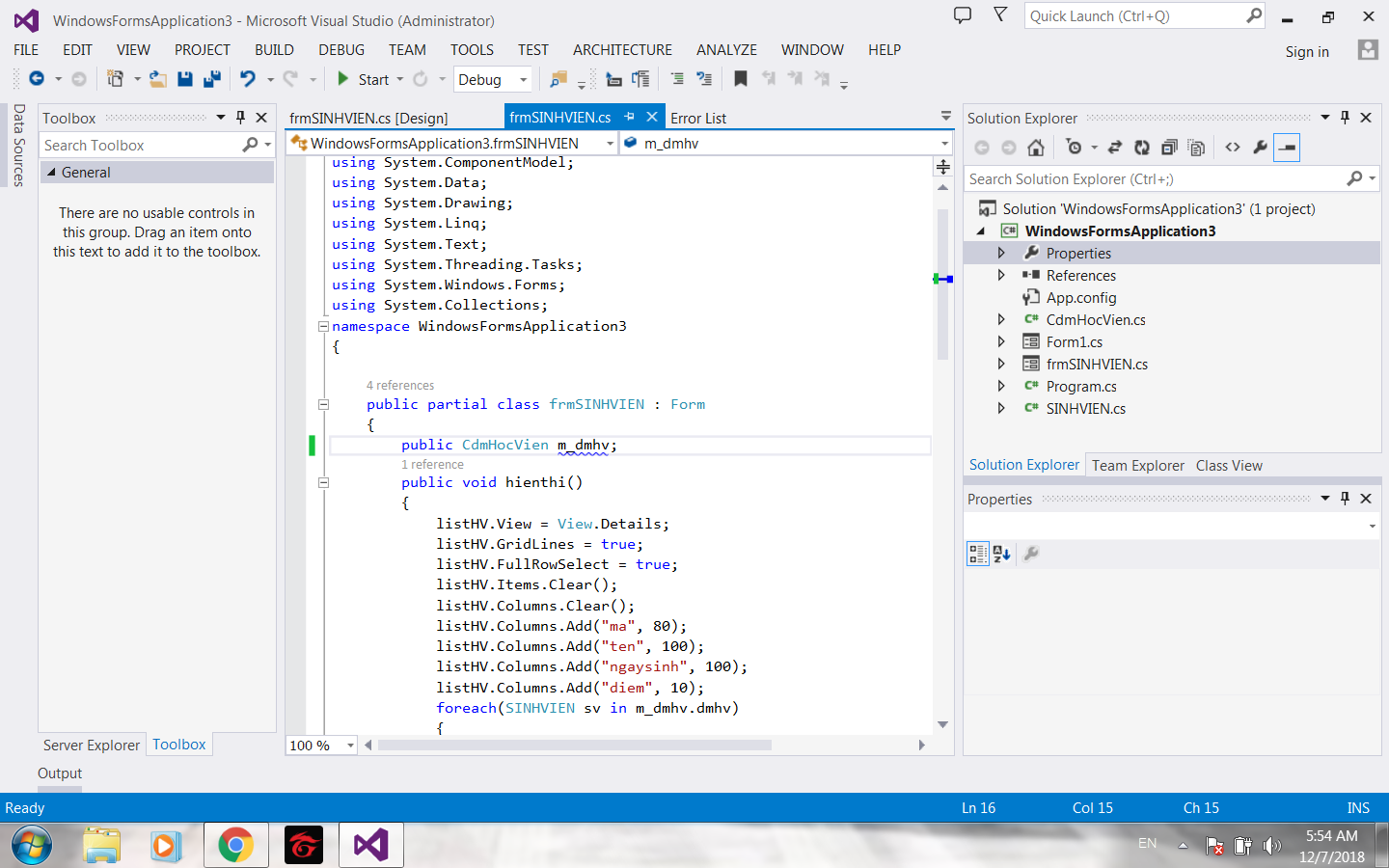 CdmHocVien và m_dmhv ko tìm thấy nhau (do 2 cái để access modifier khác nhau chẳng hạn)