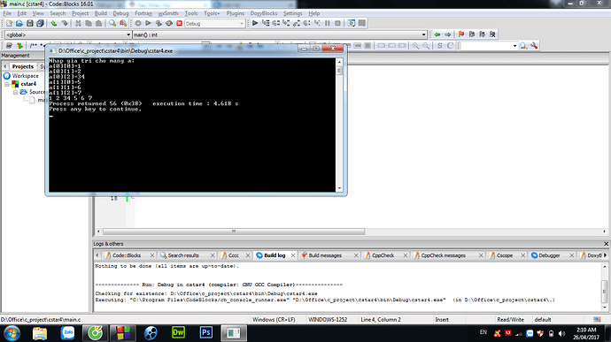 printf("Nhap gia tri cho mang a:\n");