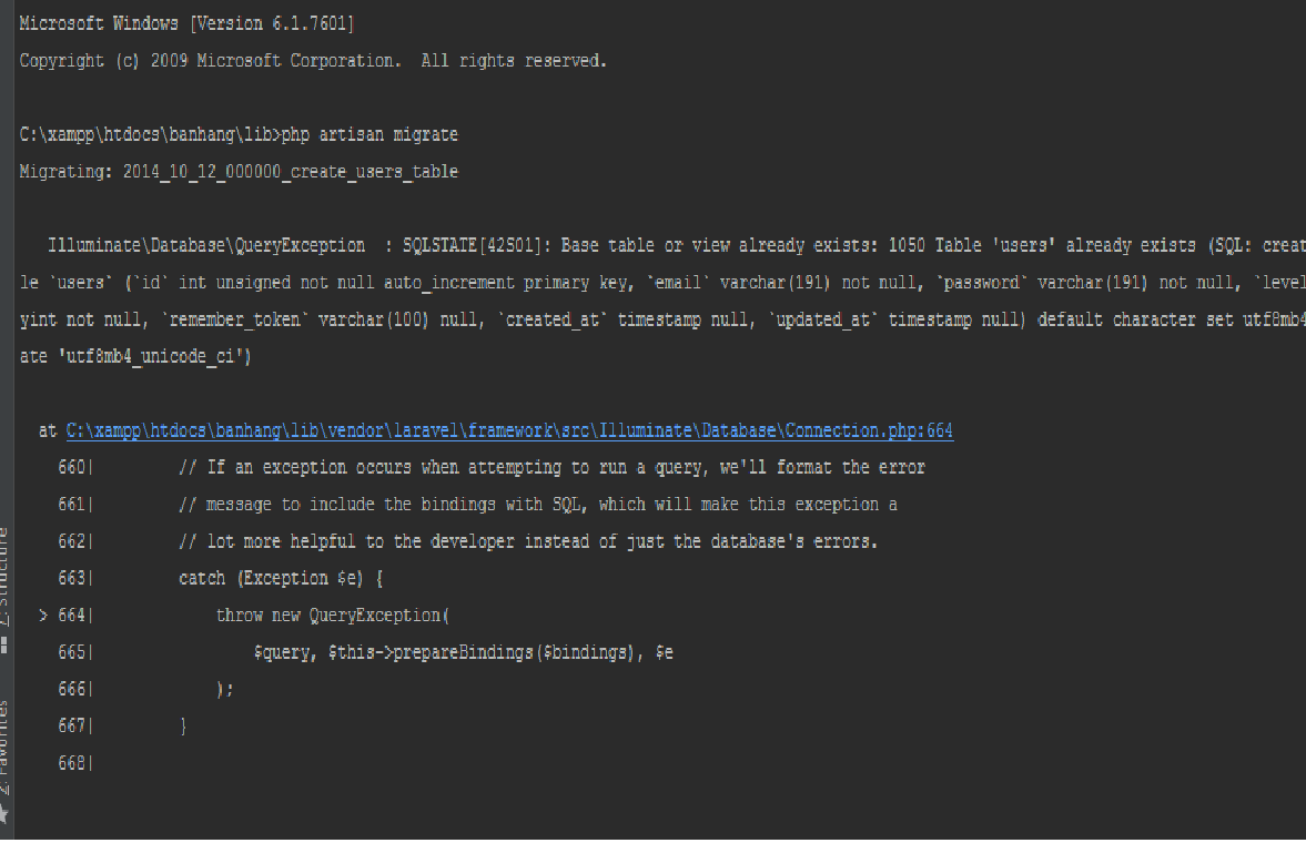 Lỗi này là lỗi em chạy lại php artisan migrate