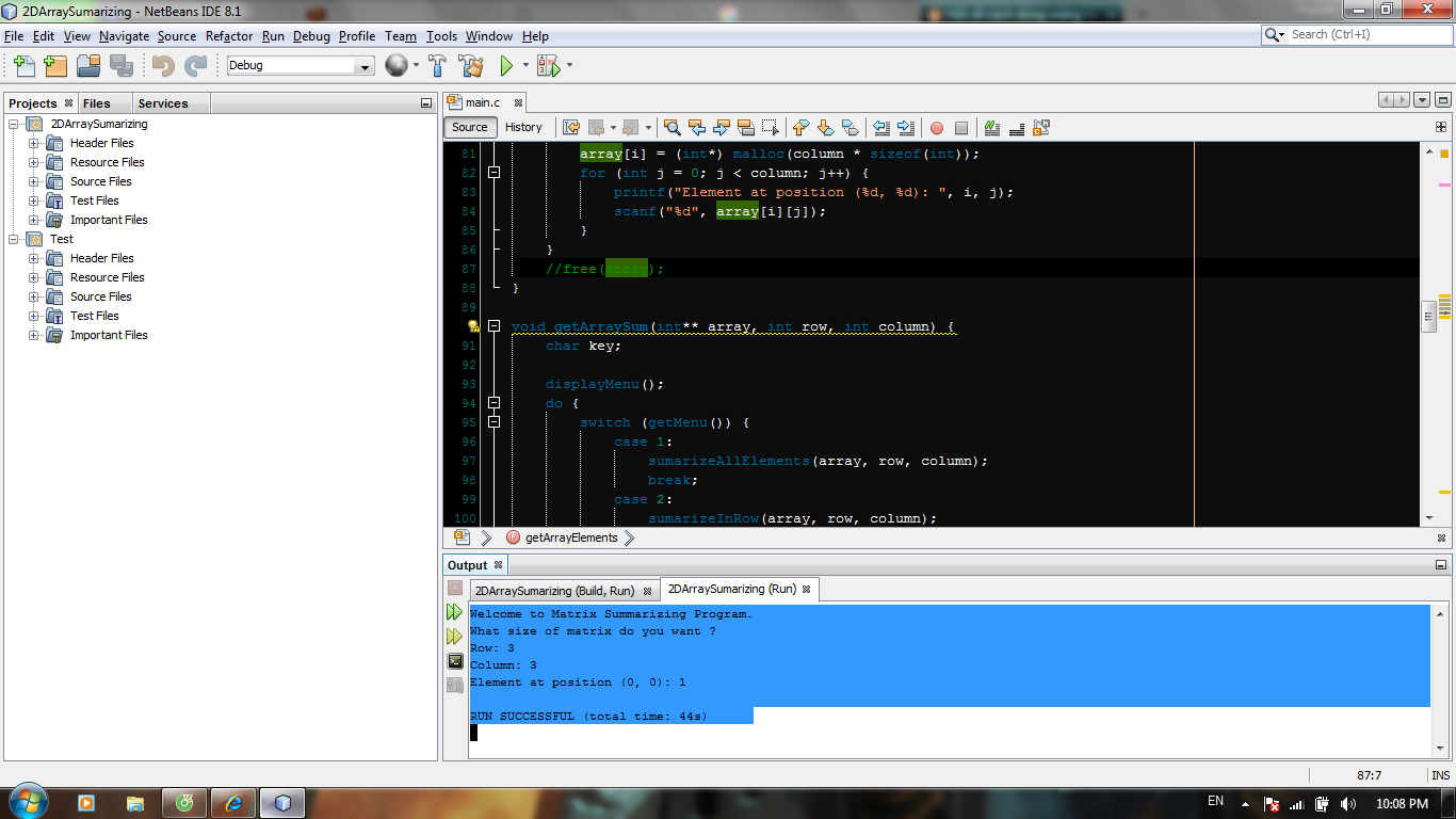 printf("Press 1 to compute the sum of all elements in your matrix.\n");