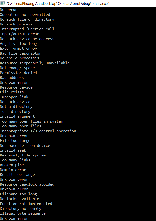 Mọi chi tiết đọc kĩ tại đây: http://www.cplusplus.com/reference/cstring/strerror/