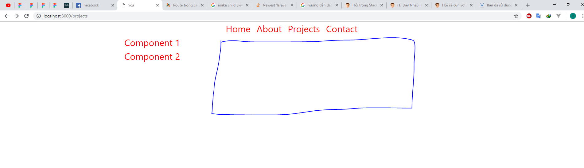 Ý tưởng mình muốn làm là ở trong trang có 1 menu (không phải menu chính) khi nhấn vào component 1 thì nó sẽ render ra nội dung của file content1.blade.php và tương tự ở trang component 2. Nhưng mình làm hòi mà nó k ra. Bạn nào có thể giải thích giúp mình được k?