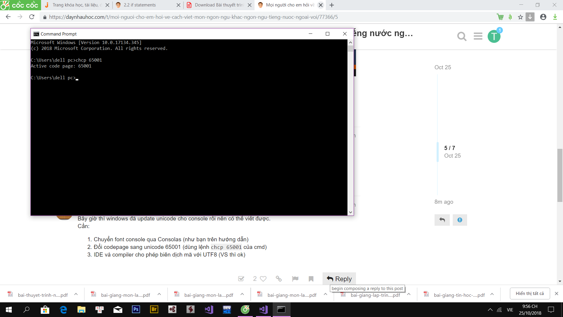 chcp 65001của cmd) - IDE và compiler cho phép biên dịch mã với UTF8 (VS thì ok)