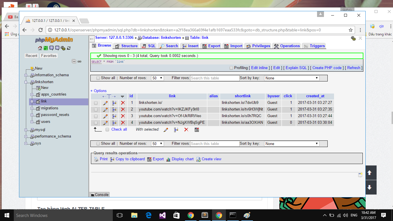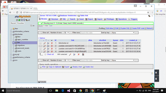 Chào các bác, hiện em đang làm 1 trang web shortlink.Em đã có 1 table có chứa shortlink: