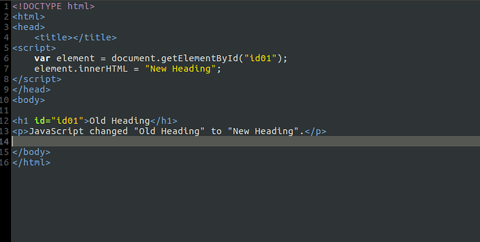 cho mình hỏi là như code bên dưới nếu cho đoạn script vào trong thẻ thì không chạy được, nó hiện Old Heading là sao ạ? Mình tưởng nhúng javascript vào đâu cũng được