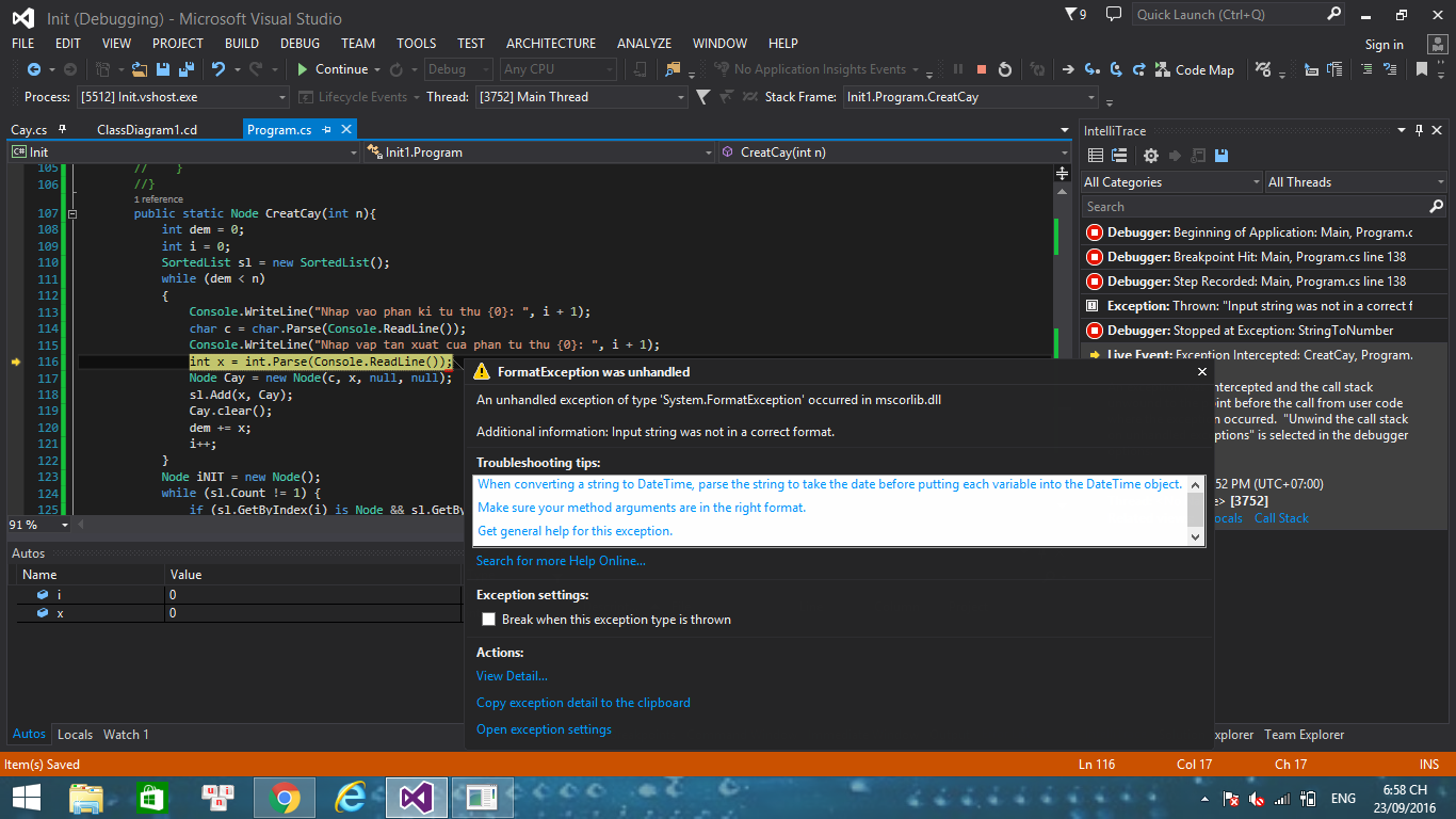 Khi em thực hiện debug thì gặp phải lỗi như thế này: