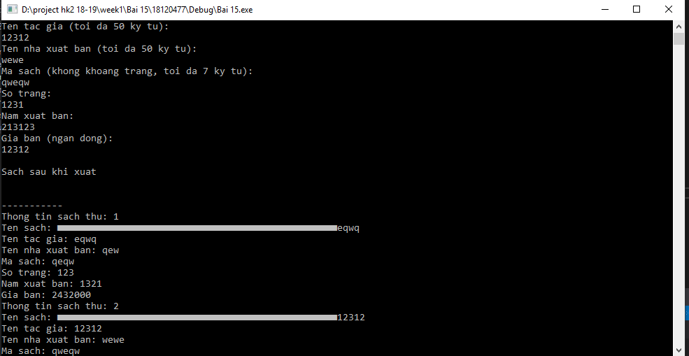 - Thêm một quyển sách vào trong mảng. Cho người dùng nhập thông tin sách và vị trí cần thêm vào. Kiểm tra tính hợp lệ của vị trí mà người dùng thêm vào.