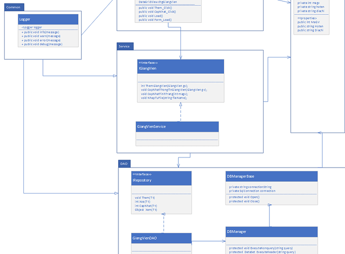 Em mới học lập trình và đang thắc mắc về một số lớp trong mô hình đa lớp GUI, Service,DAO,DTO,Comon.