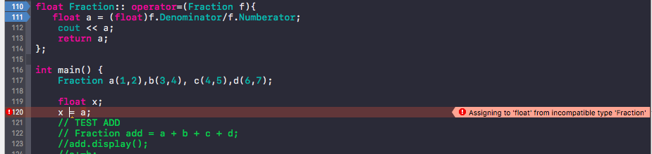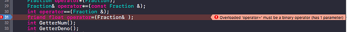 + Nếu để friend float operator=( Fraction &) thì bị lỗi :