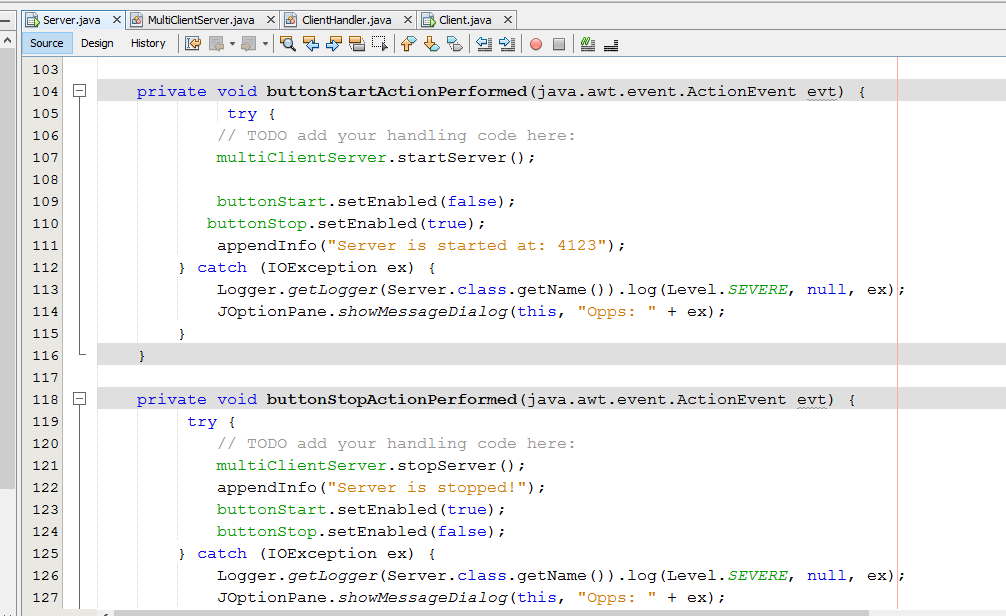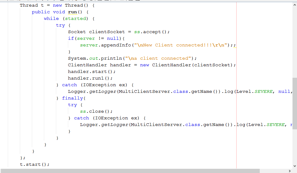 Các bác cho em hỏi em muốn làm về java swing , socket , 1 cái ứng dụng chat , nhưng e muốn nó đọc từ client và hiện ra ở textArea nhưng toàn bị lỗi e thử 2 cách nhưng không đc sử dụng append và setText area nhưng không đc