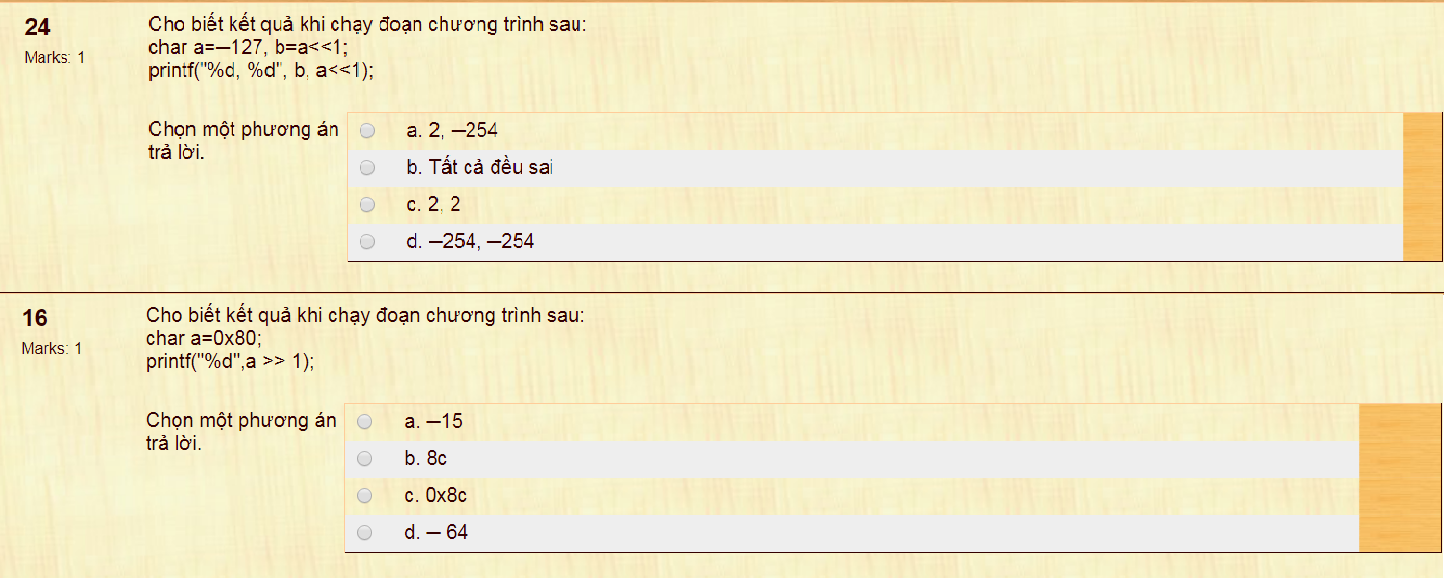 a << 1 print dưới dạng %d -> a << 1 = -254 -> A