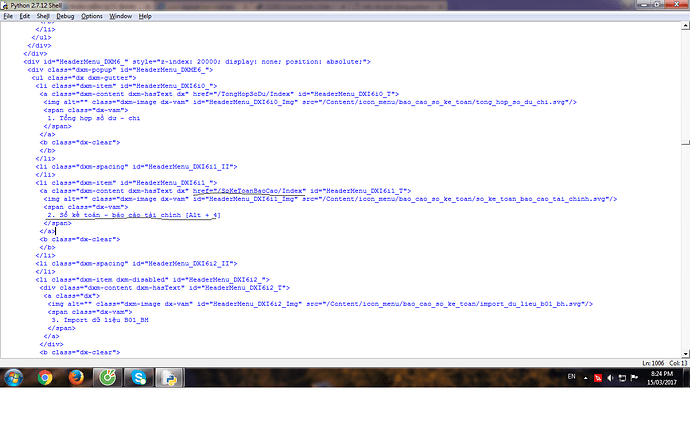 E đã thử web zing.vn (vì web của e cần làm cũng giống web zing; ở chỗ: khi vào web có những thẻ tự động xổ xuống cho mình các mục để chọn) cụ thể: E muốn vào mục thời sự e code: driver. find_element_by_link_text(“Thời sự”).click(), xong đọc mục Giao thông trong Thời sự e lại code: driver. find_element_by_link_text(“Giao thông”).click() - và đã làm được, ở đây e thấy Thời sự và Giao thông đều chứa ở link: href hết. Còn với web e cần làm e thấy mục “Báo cáo - Sổ kế toán” ko có chứa ở cái link nào cả (như hình H4). Anh/Chị hướng dẫn e cách nào để vào xem báo cáo với ạ??!!! (do e là thành viên mới nên ko up được nhiều hình cùng 1 lúc nên phải chia nhỏ câu hỏi ra, mong các anh/chị đọc thông cảm)
