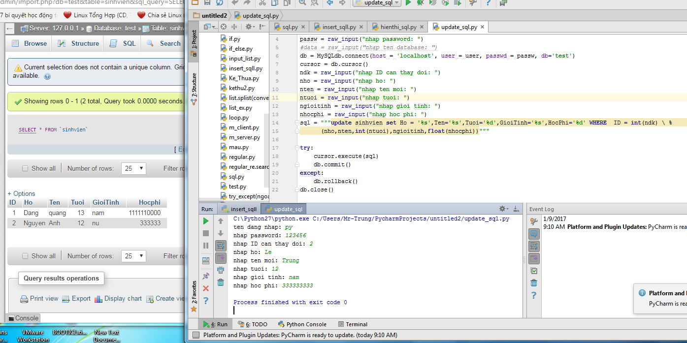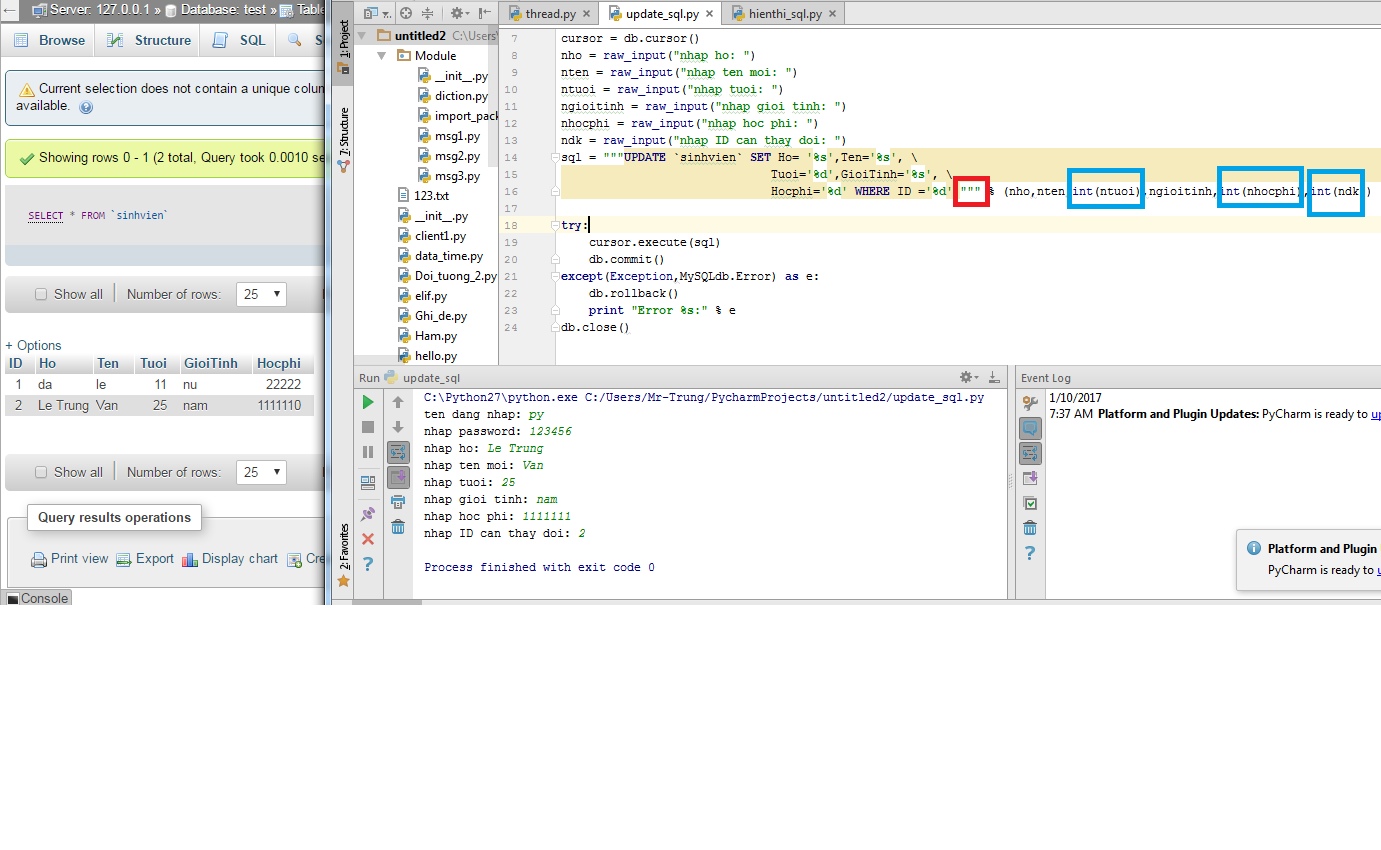 trong hình là đoạn code update tuổi + thêm 1 vs điều kiện giới tính là nam.