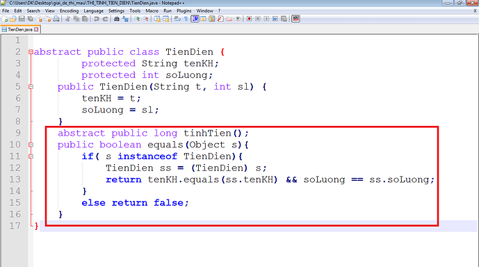 Đoạn code kiểm tra xem đối tượng s có phải là 1 instance của class TienDien hay không