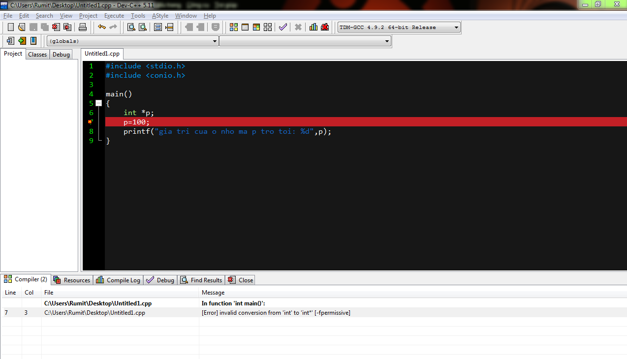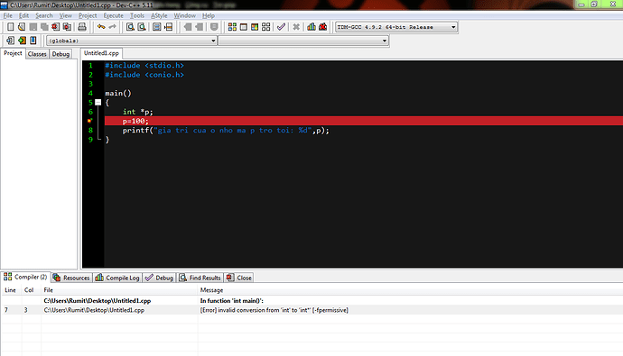 p=(int*)100; // ép kiểu (int*) cho 100 rồi gán cho p