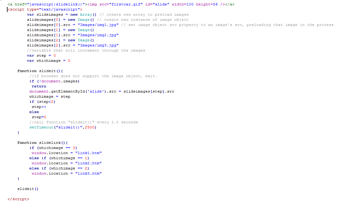 Chào các bạn hiện tại mình đang làm một đoạn code về phần slideshow kết hợp với link trong javascript và đây là đoạn code của mình: