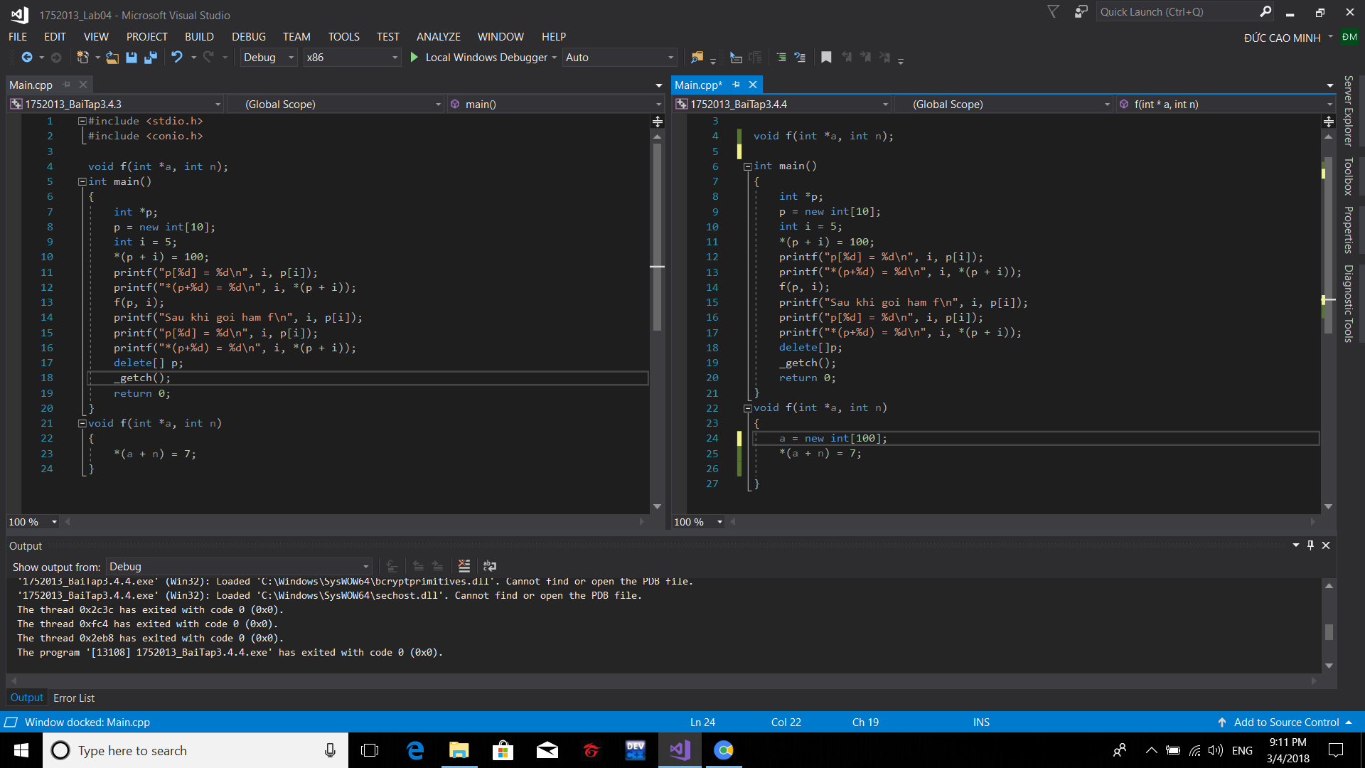 Xin chào các a chị, e mới học con trỏ nên chưa rành lắm, a chị cho e hỏi vì sao sau khi gọi hàm f ở 2 đoạn code sau lại chạy ra khác nhau ạ