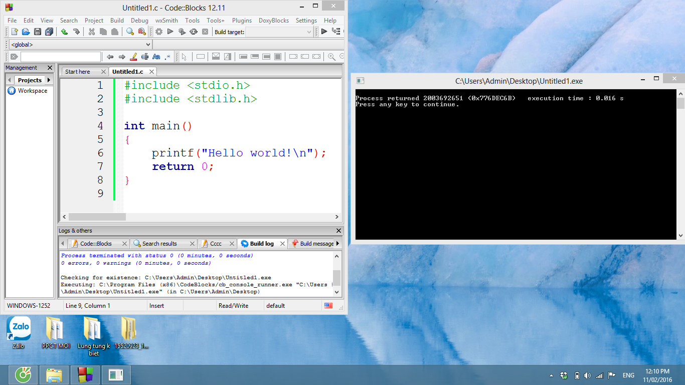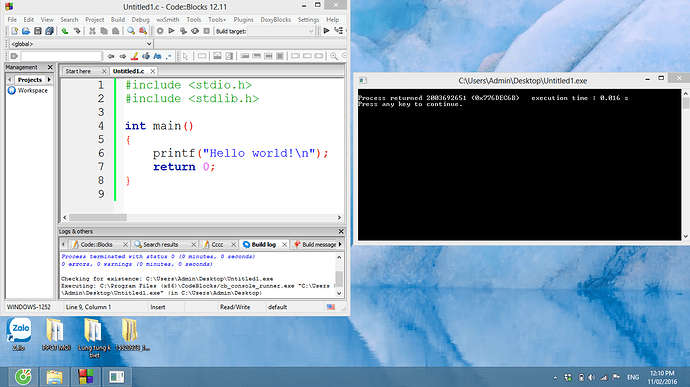 Codeblocks e cài và dùng bình thường k sao. Tự nhiên hôm nay nó cứ bị như vầy. Chạy code nó k hiện ra gì cả. a/c nào biết chỉ em cách khắc phục với ạ?