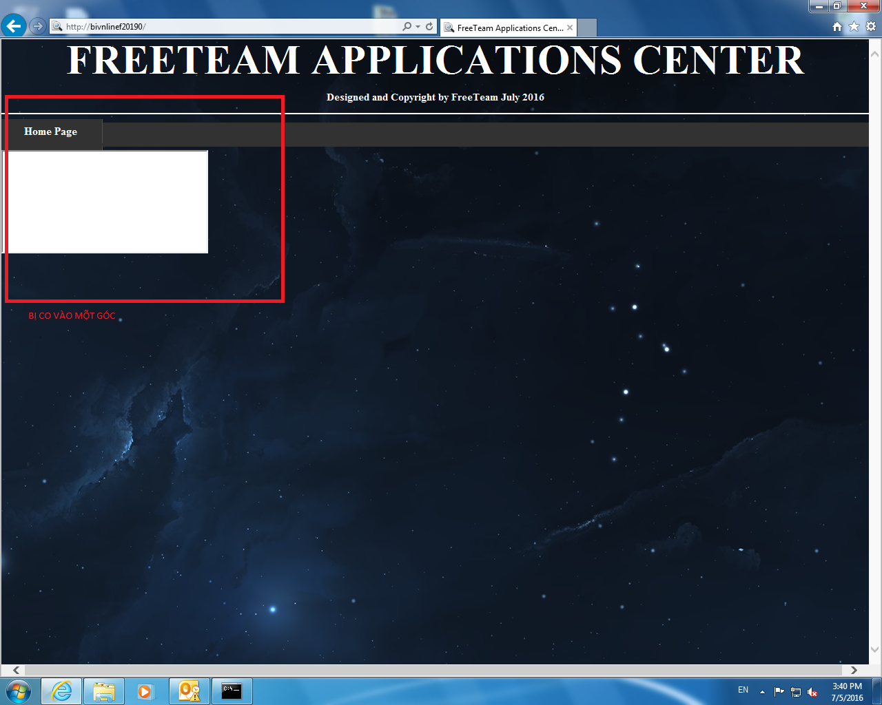 Mình đánh tên máy vào địa chỉ IE thì nó hiển thị sai, gõ IP thì lại đúng. Thực sự thì mình chưa biết do đâu, nếu do code thì các bạn chỉ mình cách fix để chạy với IE nhé.