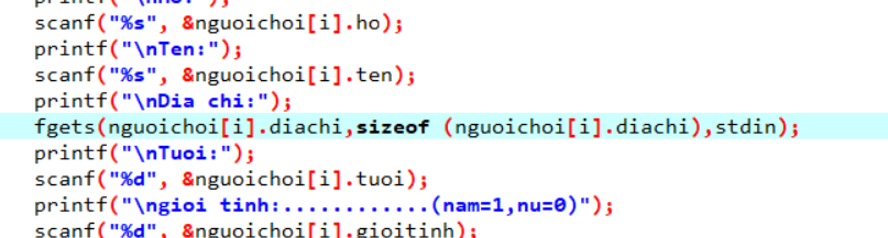 scanf("%s", &nguoichoi[i].diachi);