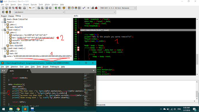 Các bác giải thích giúp mình tại sao cùng dùng 1 phương thức nhập giống nhau ( cùng dùng fgets hay gets )