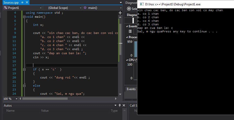 cout << "dap an cua ban la: ";