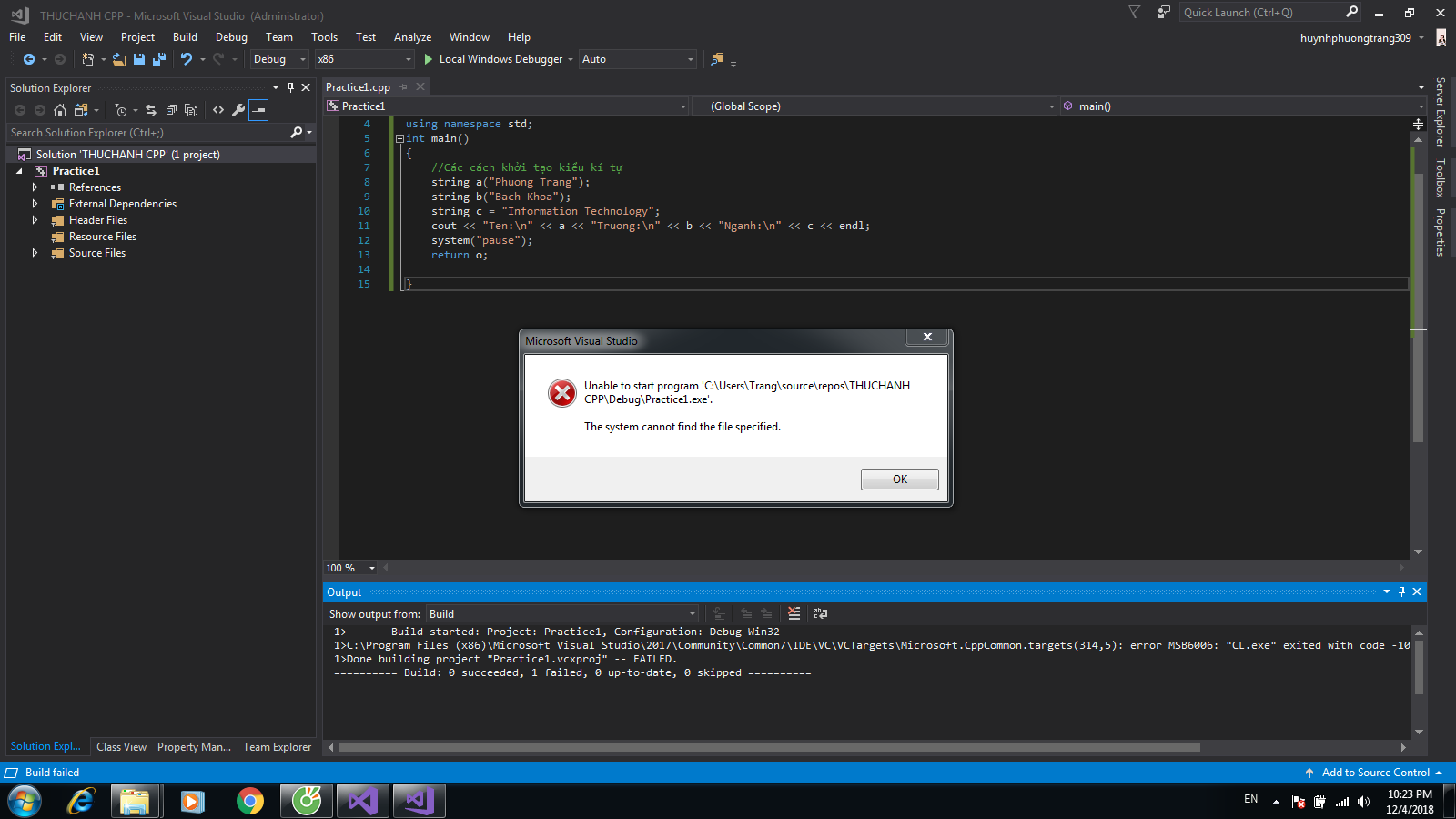 Không chạy được chương trình trong VS