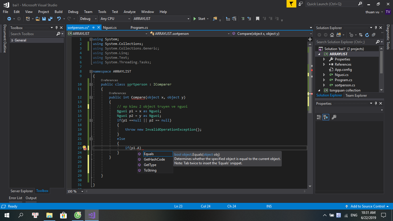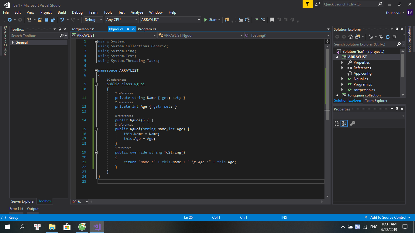 va trong class sortperson mình có gọi class nguoi vào roi mà khi mình tính gọi thuộc tính ra thì nó ko có là sao vậy