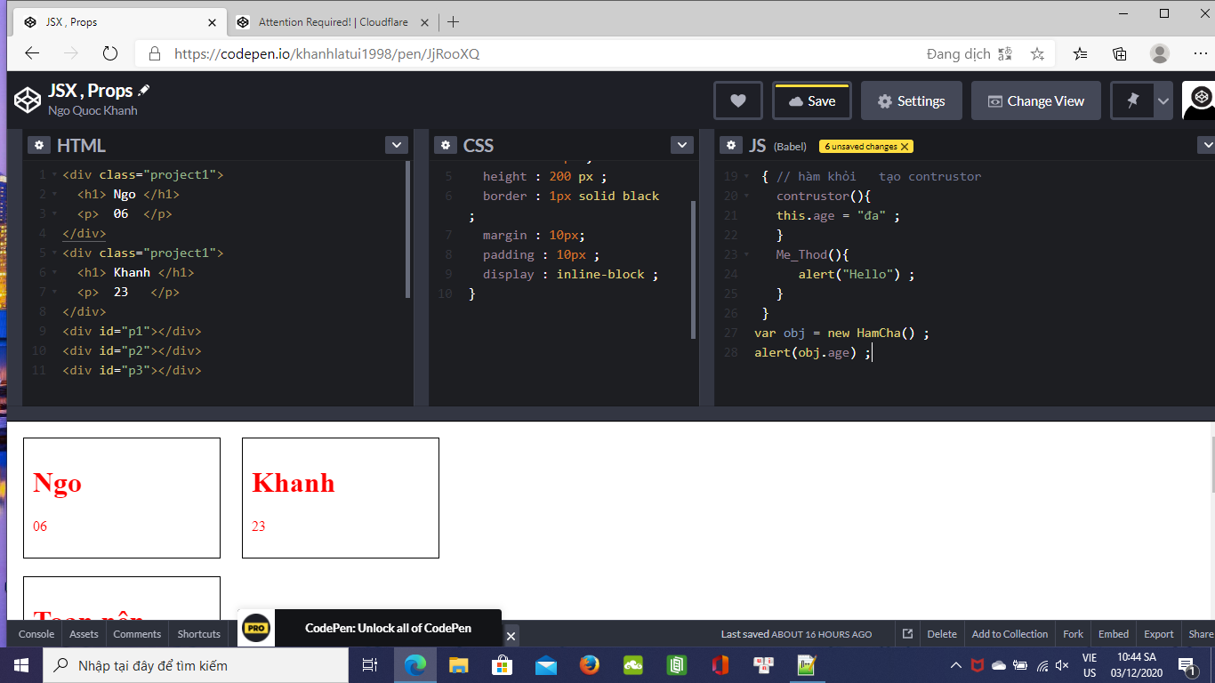 Có dòng 6 unsaved changes - 6 thay đổi (trong code) chưa được lưu và nút Save phía trên