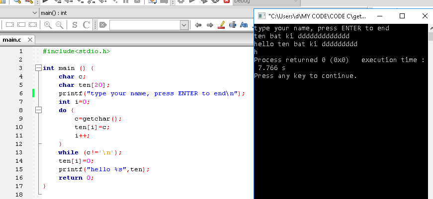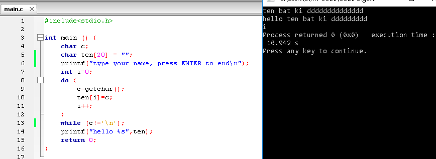 bài toán dùng hàm getchar() in ra tên bất kì
