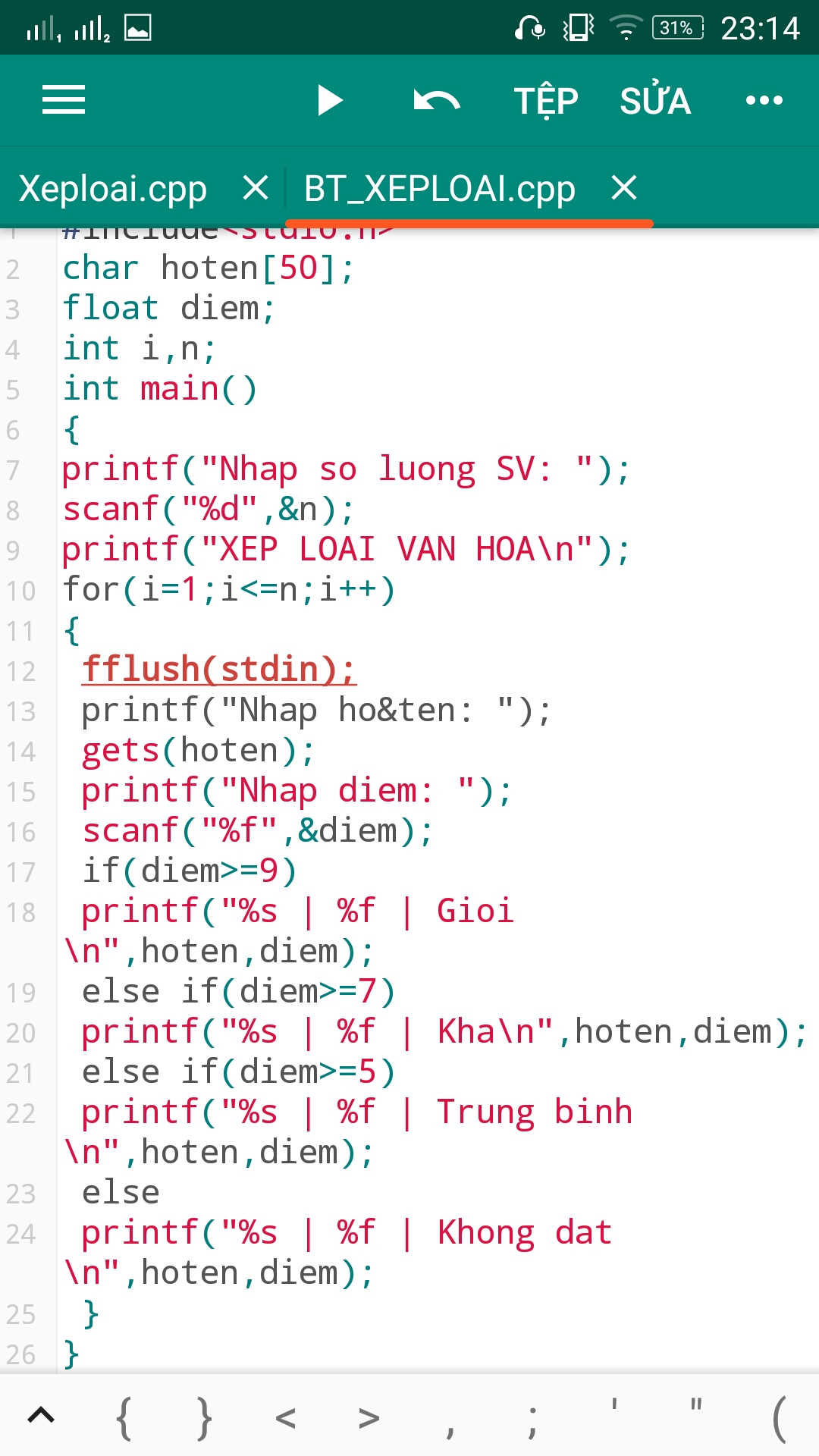 Sau khi e nhập số lượng thì lập tức nhảy xuống nhập điểm luôn ạ.