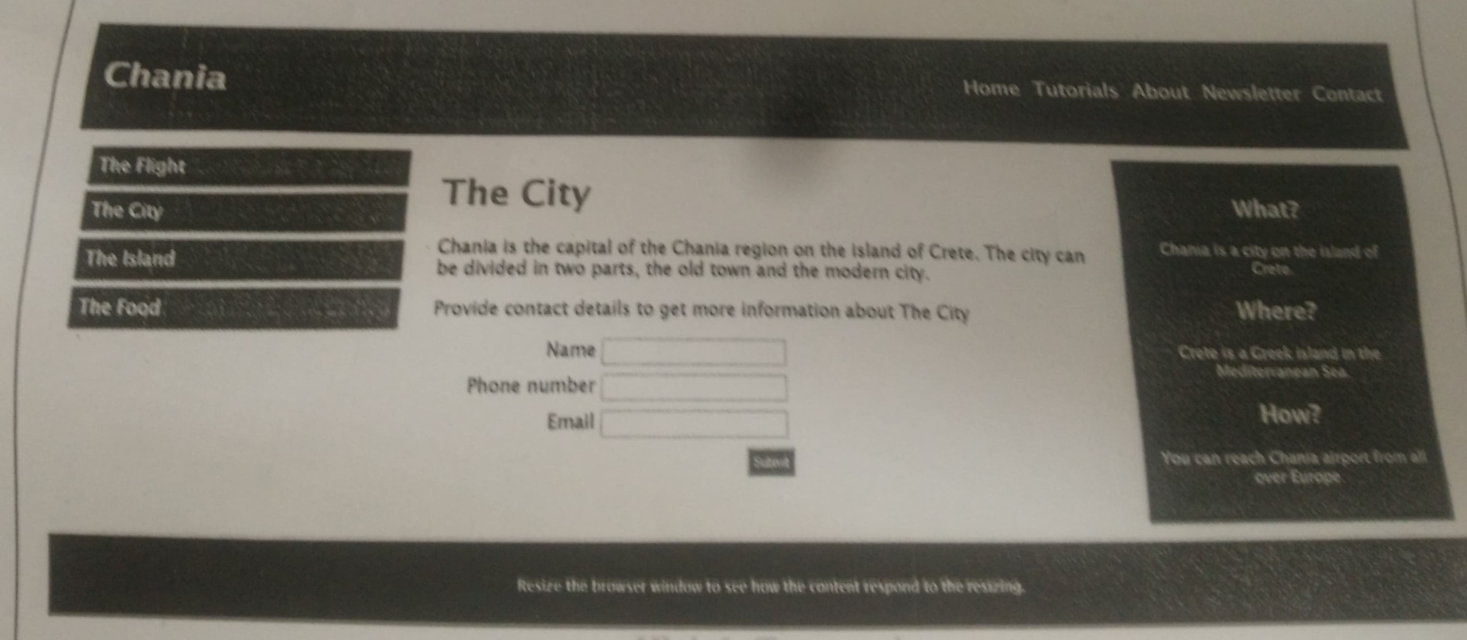 <div> trong đó chữ Chania vào thẻ<p> rồi các phần bên phải kia vào thẻ <ul> <li> không ạ và rồi căn chỉnh css cho nó.