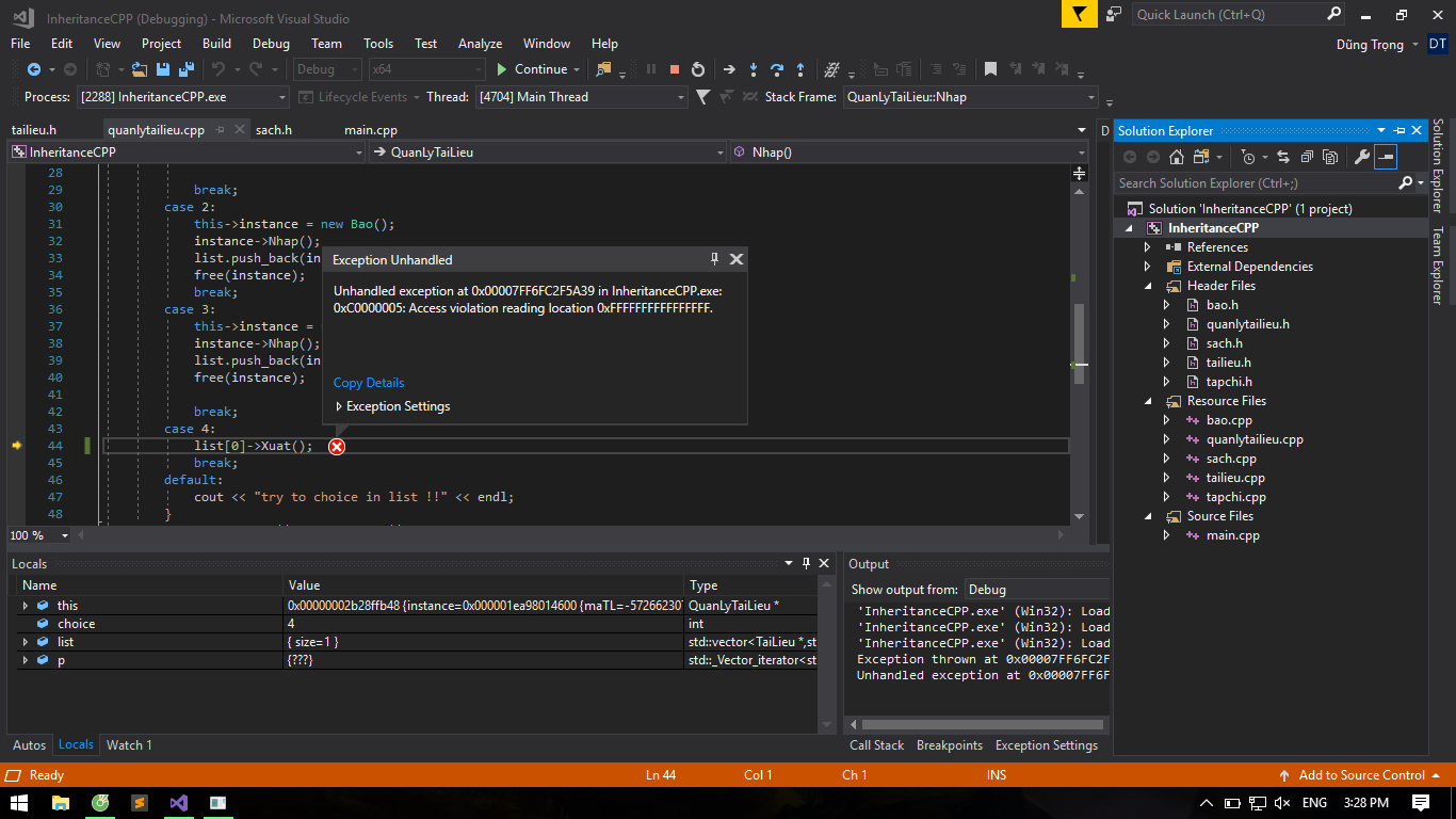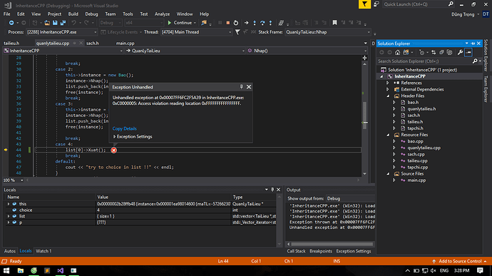 Nhưng đến đoạn xuất dữ liệu mình đang k biết làm sao để xuất ra. Mỗi class đều override lại hàm xuất của class base( class tailieu), nên khi gọi xuất nếu dùng foreach và biến chạy là auto thì nó sẽ gọi trực tiếp hàm xuất của class base và sẽ k xuất data của subclass, ai có hướng giải quyết chỉ mình với.