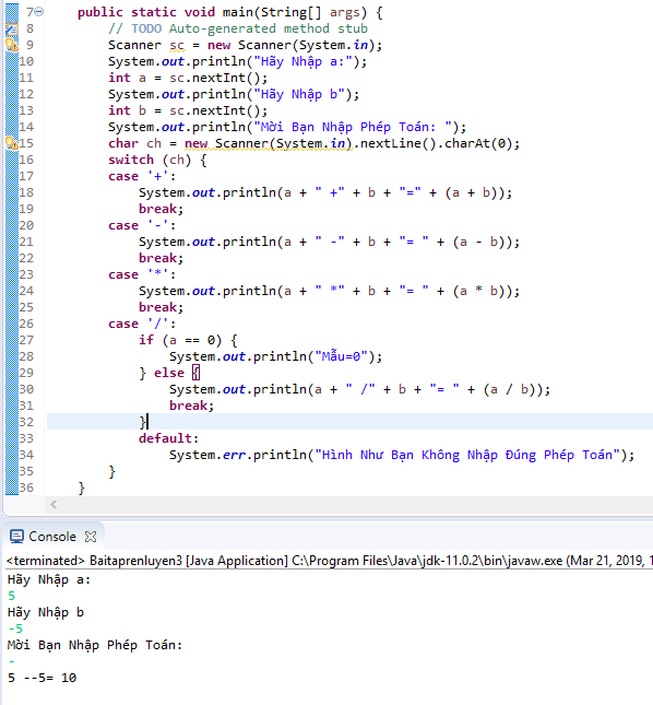 Chào ae mình mới học java cơ bản, ae cho minh hỏi làm thế nào ở phần console đáp án là 5- -5=10. Vậy cho mình hỏi là làm cách nào để biến thay vì 5+5=10 được ko ạ mong ae giúp đỡ ạ