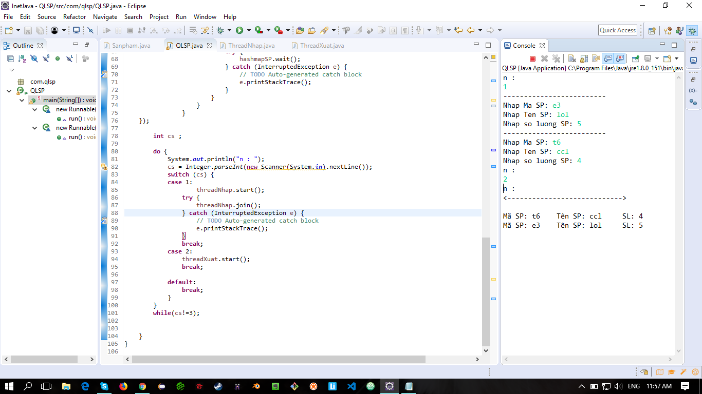 Em có tự code, nhưng lúc dùng switch/case để chọn trong hàm main thì bị ngoại lệ do cái thread đã được start rồi. Mọi người có thể cho e 1 giải pháp ko ạ? Thanks all