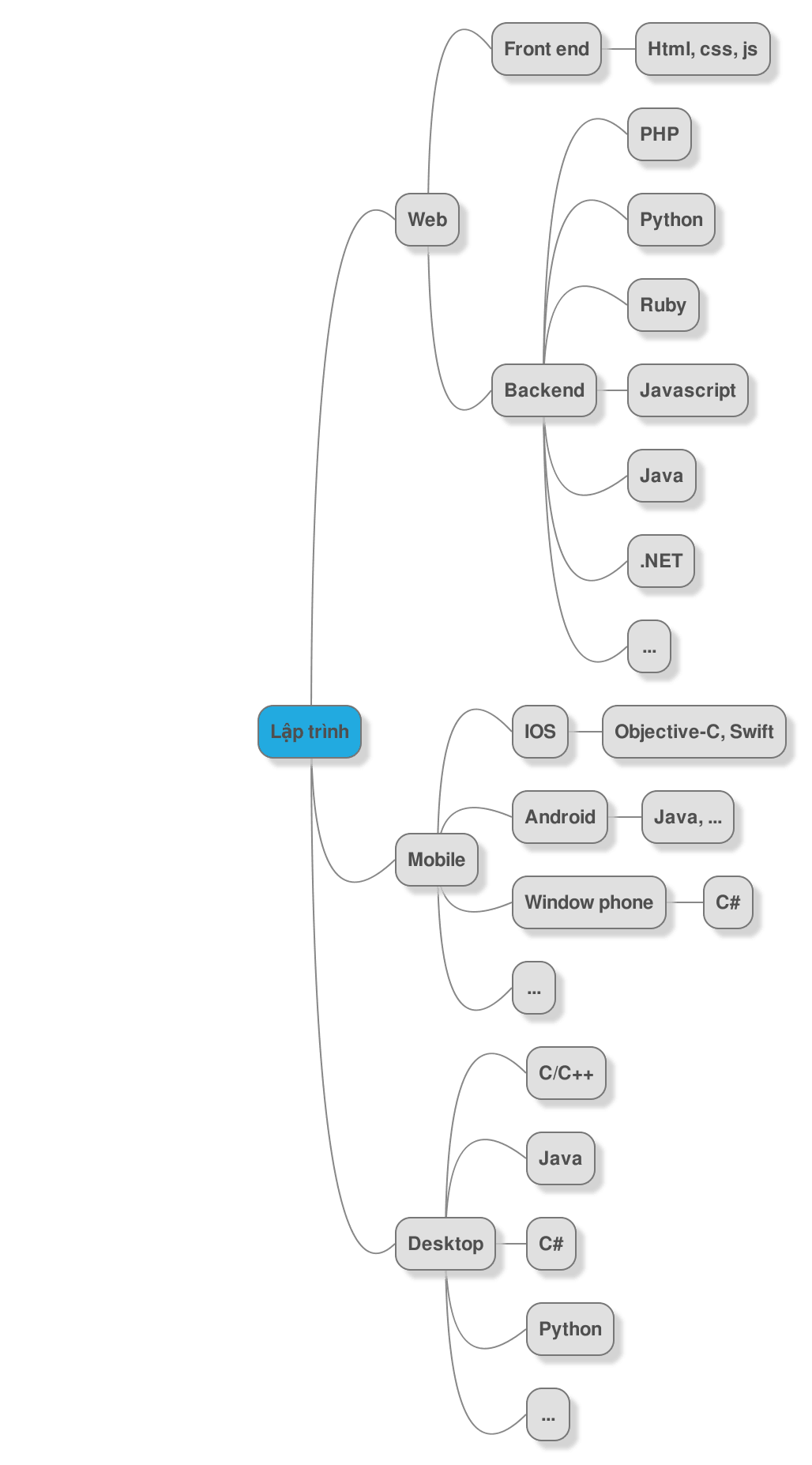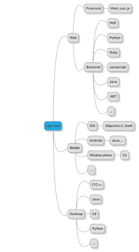 Mình vẽ 1 cái map nhìn cho vui, có thể đúng hoặc không, nhưng có nhiều con đường trong thế giới phần mềm, chọn hướng thích hợp mà đi thôi bạn