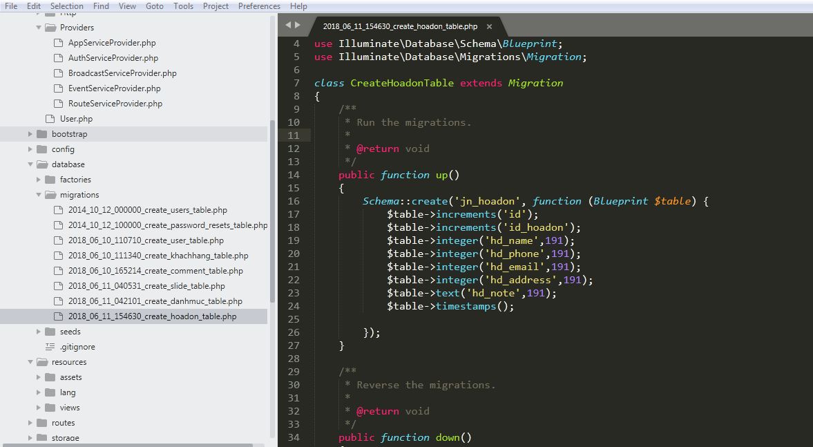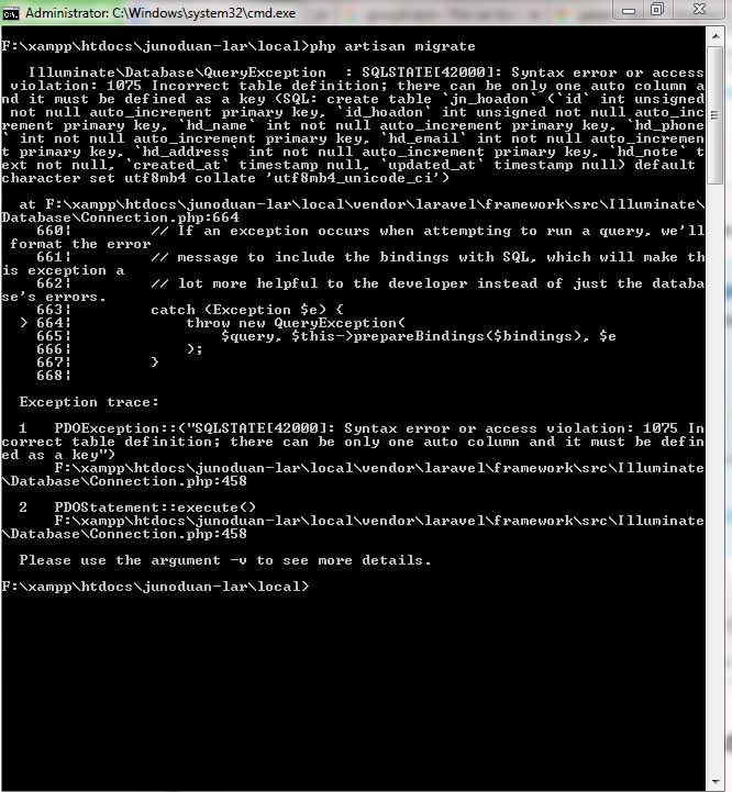 Lavarel: các lỗi khi lập bảng trong Migrations