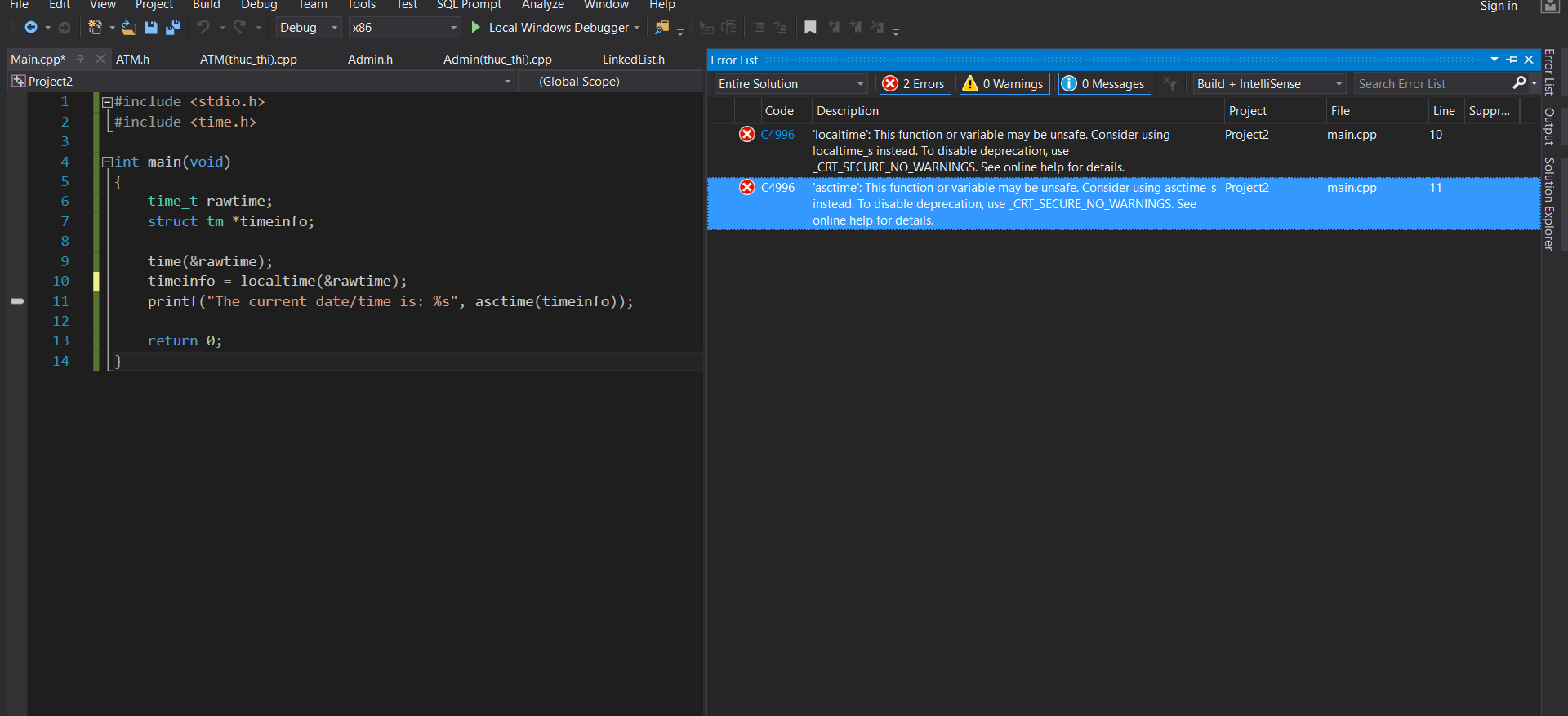 printf("The current date/time is: %s", asctime(timeinfo));