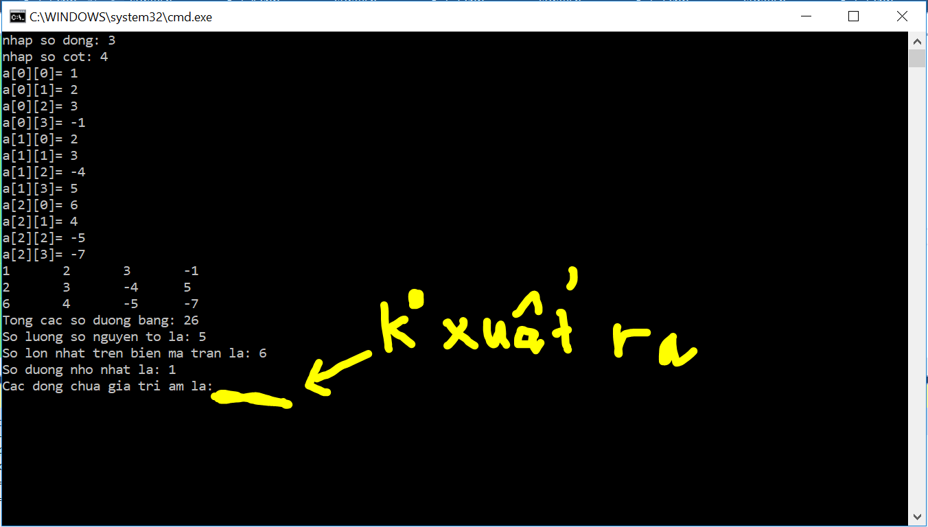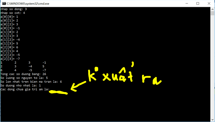 Đây là hàm liệt kê các dòng có phần tử âm trong mảng 2 chiều, mọi người giúp mình tìm hiểu xem có bị sai ở chỗ nào không vì mình chạy k ra. Cảm ơn các bạn rất nhiều