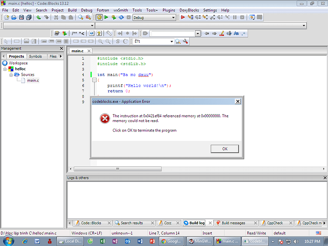 Đây là lỗi gì vậy ạ ? Em tải và cài thử code blocks bằng rất nhiều link và guide rồi ạ nhưng nó vẫn như vậy