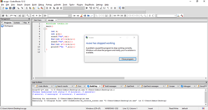 Cùng 1 đoạn code giống nhau,nhưng code bên Dev C chạy bình thường,trong khi Code Blocks lại báo lỗi.