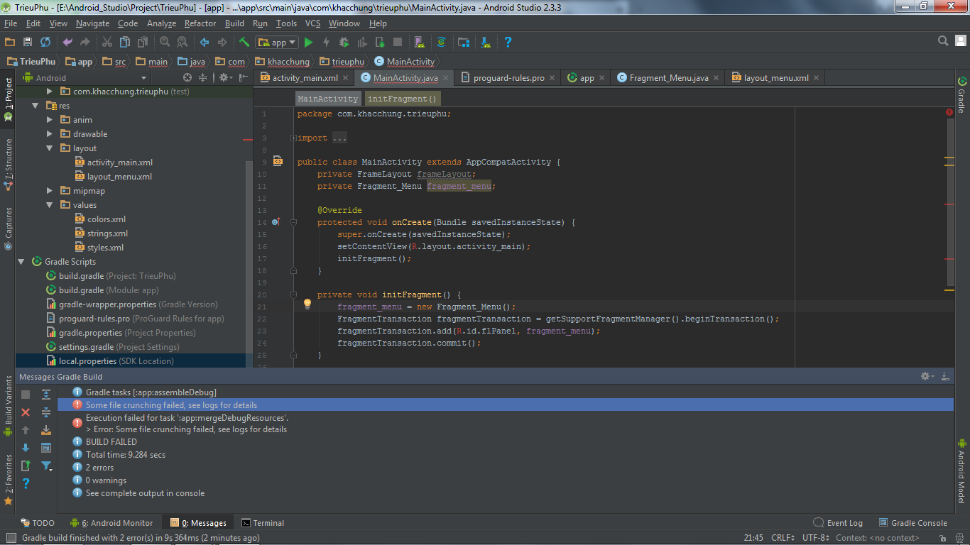 em mới update android studio lên bản 2.3.3, thì gặp phải vấn đề khi build thì không được, chỉ hiển thị như ảnh. ai biết cách khắc phục thì giúp em với ạ, em cảm ơn