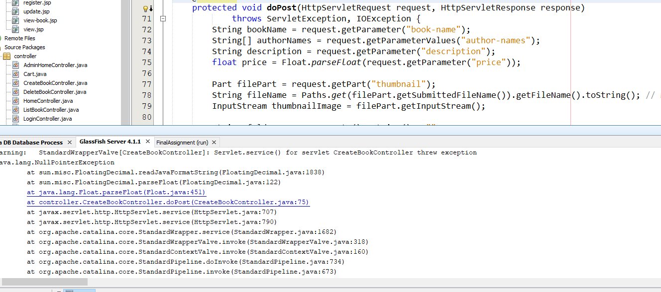 Khi Float.parseFloat() nhận 1 chuỗi trống (empty) hoặc rỗng (null) thì sẽ xảy ra lỗi này.