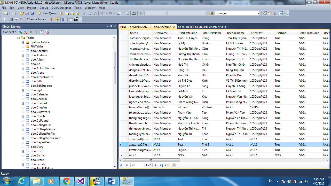 Tuy nhiên khi kiểm tra ở Database thì các dữ liệu đã được đẩy vào đầy đủ: