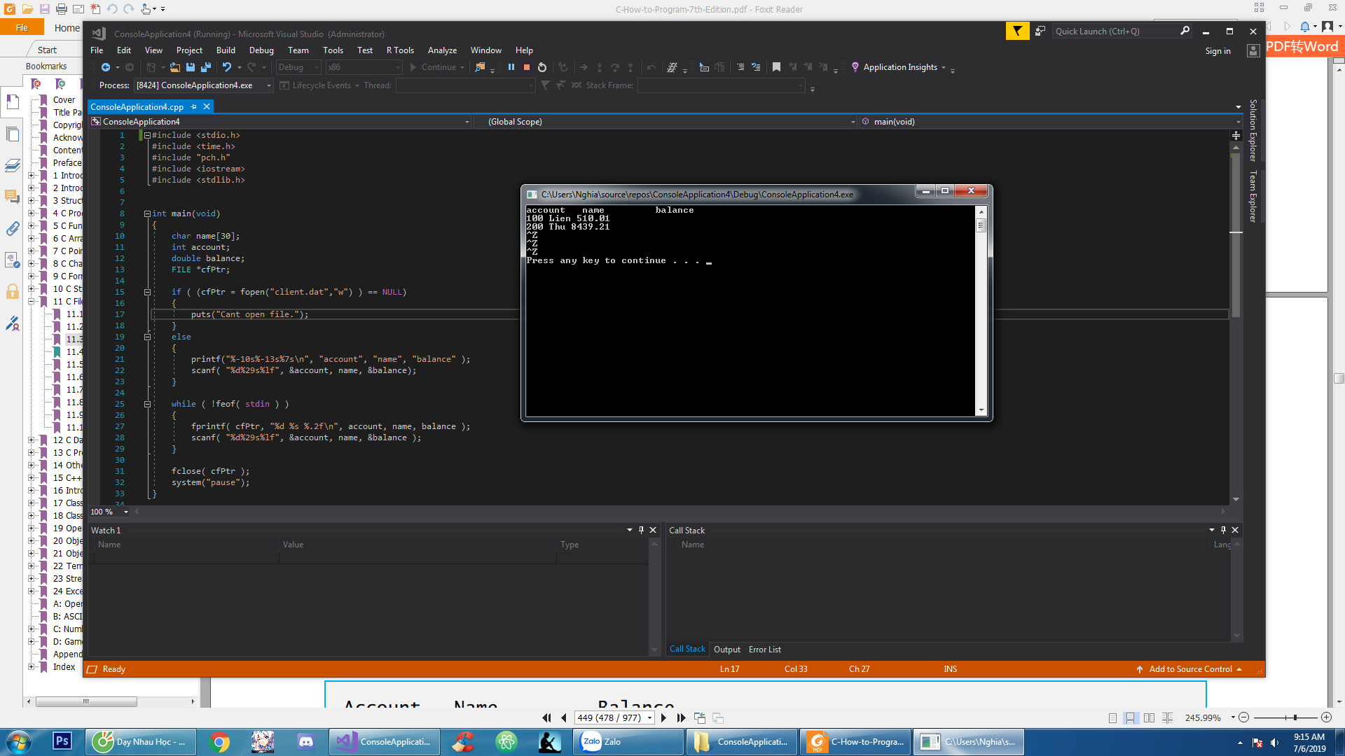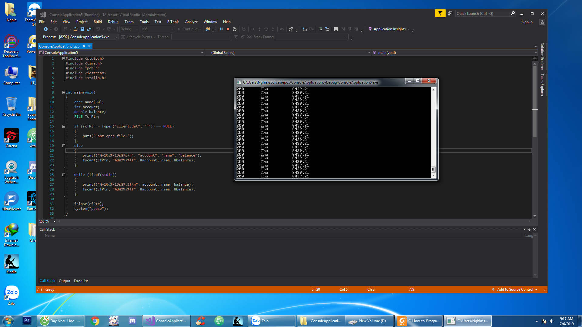 Sau sang code 2 đọc từ file client.dat ra thì lỗi không dừng, chương trình in liên tục account thứ 2.