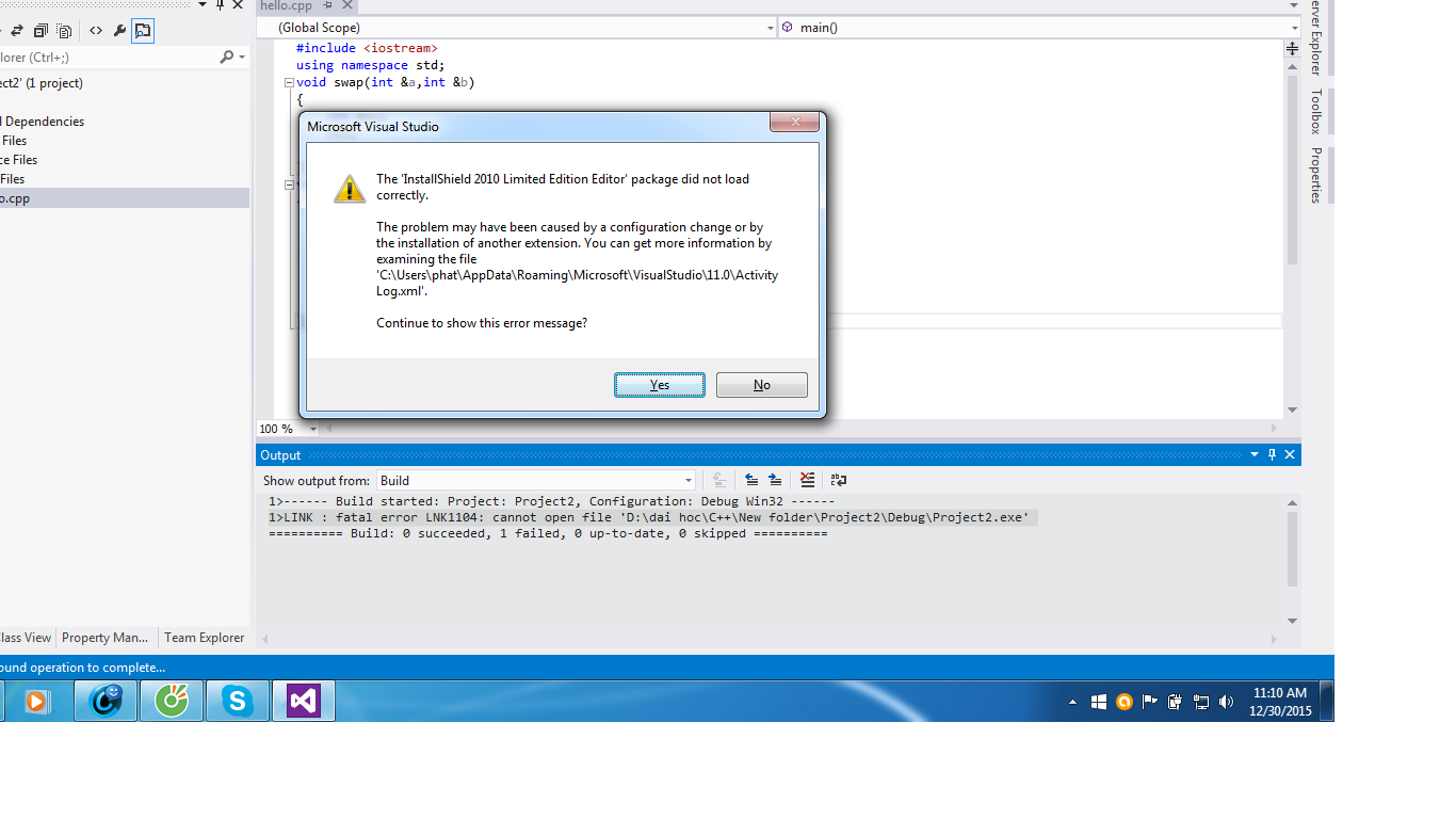 1>LINK : fatal error LNK1168: cannot open C:\Users\phat\documents\visual studio 2012\Projects\Project1\Debug\Project1.exe for writing